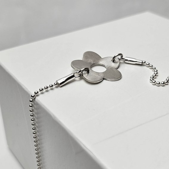 Delikatna, elegancka, srebrna bransoletka wykończona na matowo.
