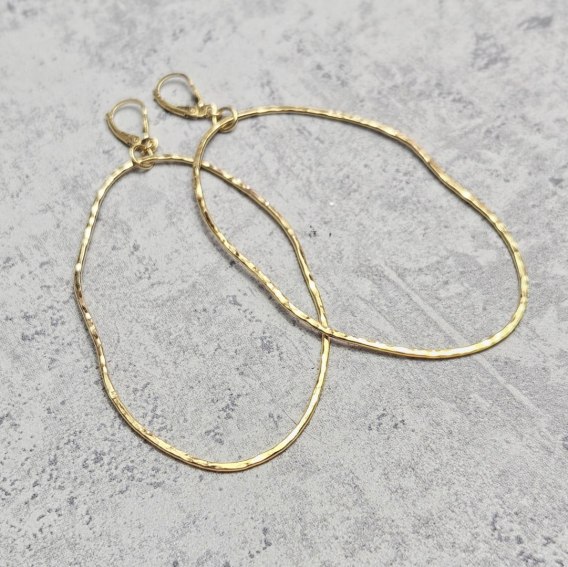 Kolczyki są wyginane ręcznie, każda wykonana para jest trochę inaczej wygięta, dzięki czemu zyskują na indywidualności. Na zdjęciach pokazuję parę przykładową, każdą kolejną wykonuję po złożeniu zamówienia i inaczej ją wyginam. Zachowuję jedynie rozmiar kolczyków.