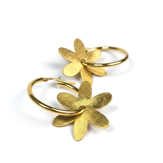 Wyjątkowe pozłacane kolczyki Stokrotki zawieszone na okrągłym wygodnym biglu.