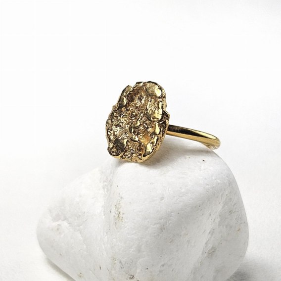 Nieregularny, gnieciony srebrny pozłacany Pierścionek Bryłka