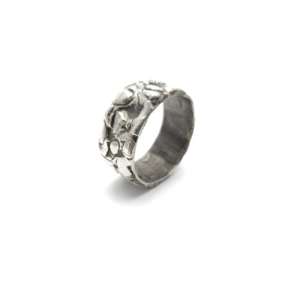 Pierścionek obrączka szeroka nieregularna ze srebra