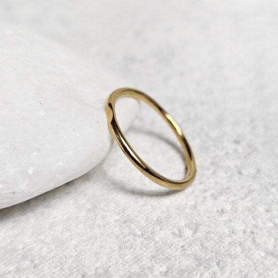 Pierścionek pozłacany gładki z wcięciem delikatna obrączka