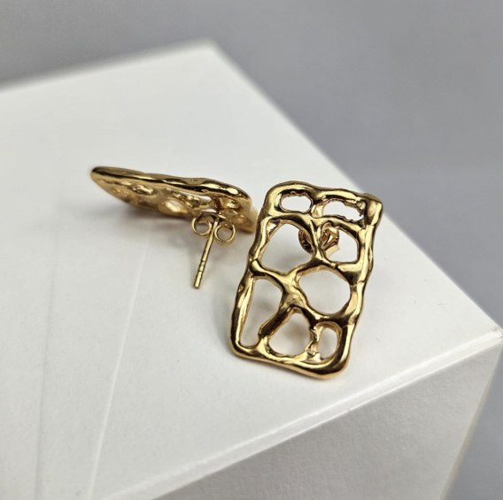 Pozłacane ażurowe kolczyki prostokątne z kolekcji SMUGI