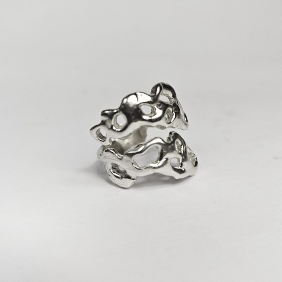Regulowany ażurowy organiczny srebrny pierścionek SMUGI