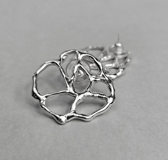Inspiracją do powstania tych kolczyków były spękania powstałe na suchej ziemi. Tworzą się wtedy niesamowite formy, które odwzorowałam w srebrze.